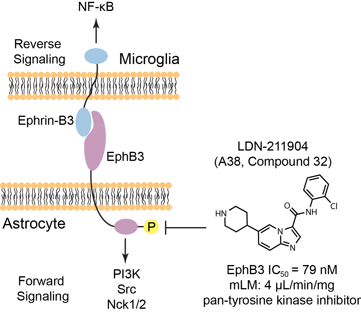 inhibition of EphB3 reduces inflammatory signaling. It is unclear where the name A38 came from,