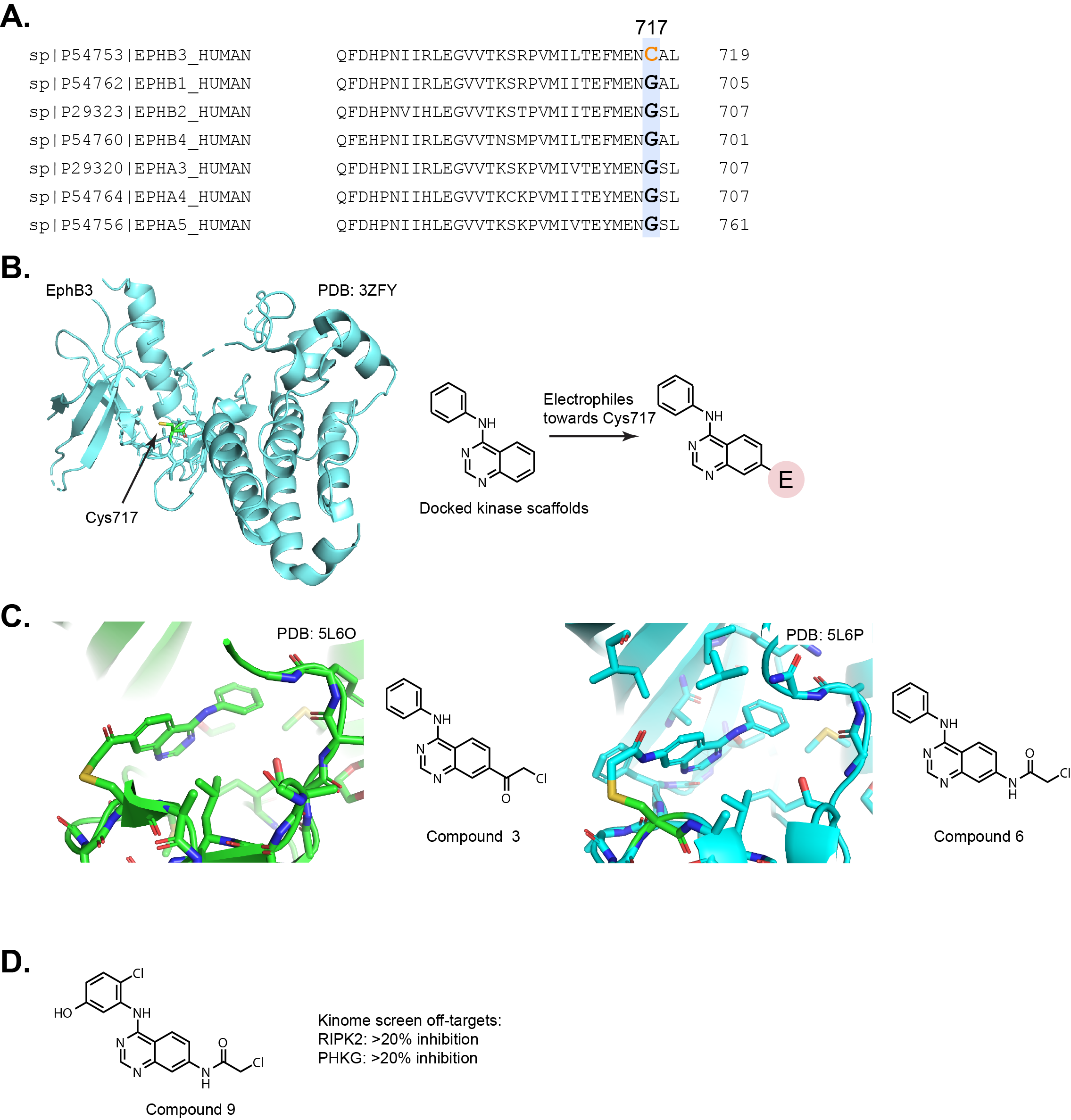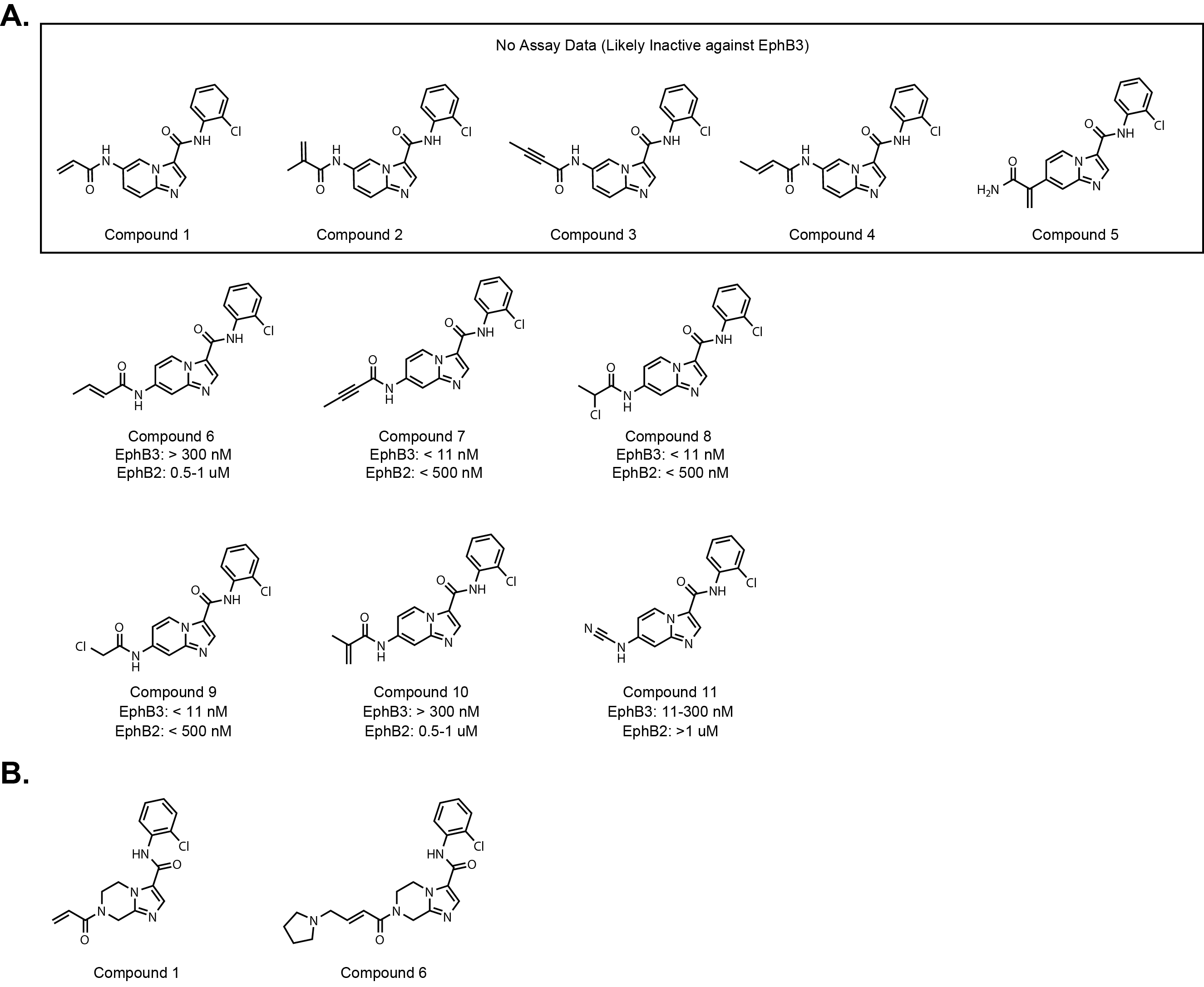 EphB3 by attaching electrophiles to a scaffold from a reversible, non-covalent inhibitor reported in the literature.