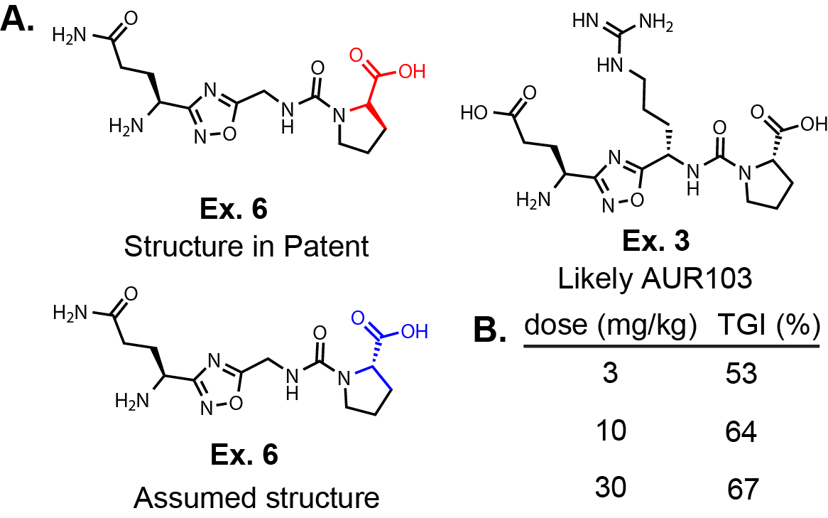 AUR103. Although, in the original patent application Ex. 6 is the only molecule evaluated in a syngeneic lymphoma